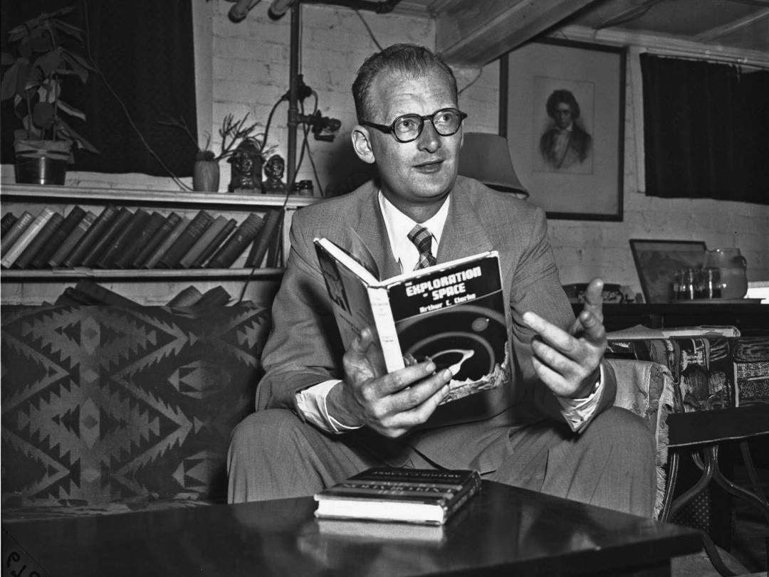 ▲亚瑟·查尔斯·克拉克,英国科幻小说家,主要作品有《来自天穹的声音》《月尘飘落》,获星云科幻大师终身成就奖。