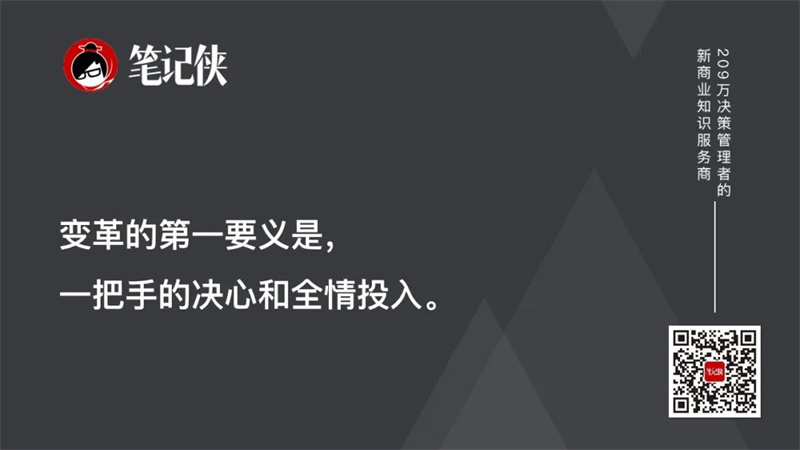 所以,变革的第一要义是一把手的决心和全情投入。