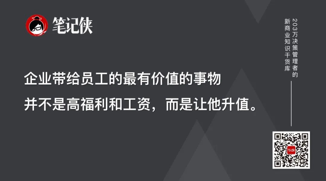 其实,企业能够带给员工的最有价值的事物并不是高福利和工资,而是让他升值,让他具备更加强大的市场竞争力,这个成长的过程对员工来说才是最重要的。