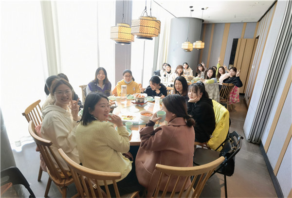 今年的春天来得尤其的早一些,堪堪三月初,路边绿化的花便都已开的千娇百媚,空气中也飘荡着淡淡的花香。今日天公作美,阳光明媚,大家三两结伴步行前往今日活动第一站——绿茶餐厅,快乐活动的开始怎么能少了一顿清新可口的美味呢?桂花糖藕、蛋黄鸡翅、绿茶烤鸡……随着一道道杭州特色菜上桌,大家也都抛下陌生感带来的芥蒂,说笑间品尝美食,推杯换盏间相视一笑,平时低头工作的距离感仿佛在这瞬间减轻了不少。