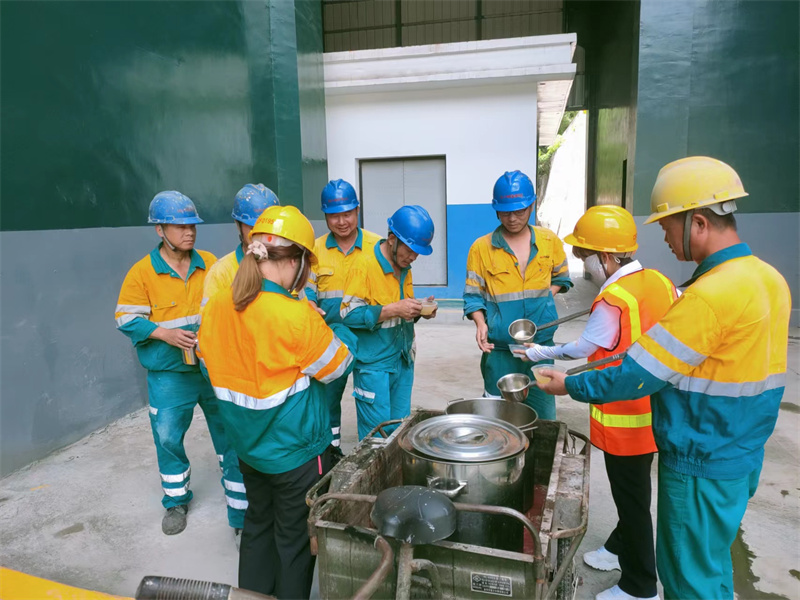 “大家辛苦了,天气热,要注意身体,快来喝冰镇绿豆汤......”一句句关怀的话语和亲切的慰问,让奋战在一线的员工们很是感动,也使他们切实的感受到了公司对他们的真情关爱,冷饮是凉的,但是暖了大家的心,每位员工的脸上都洋溢着幸福的笑容。