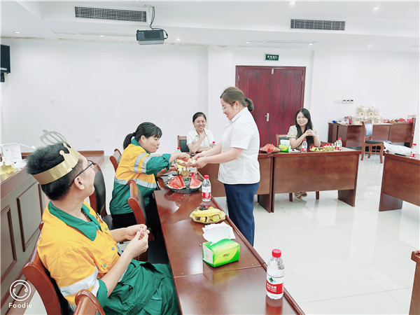 活动现场摆满了西瓜、葡萄、枣子等水果,伴随着欢快的生日歌伴奏,到场的21名寿星同唱生日歌,同品生日蛋糕,分享生活中的趣事,工作中的经验,祝福自己的同时,也给同是寿星的同事们送上了暖心的祝福。